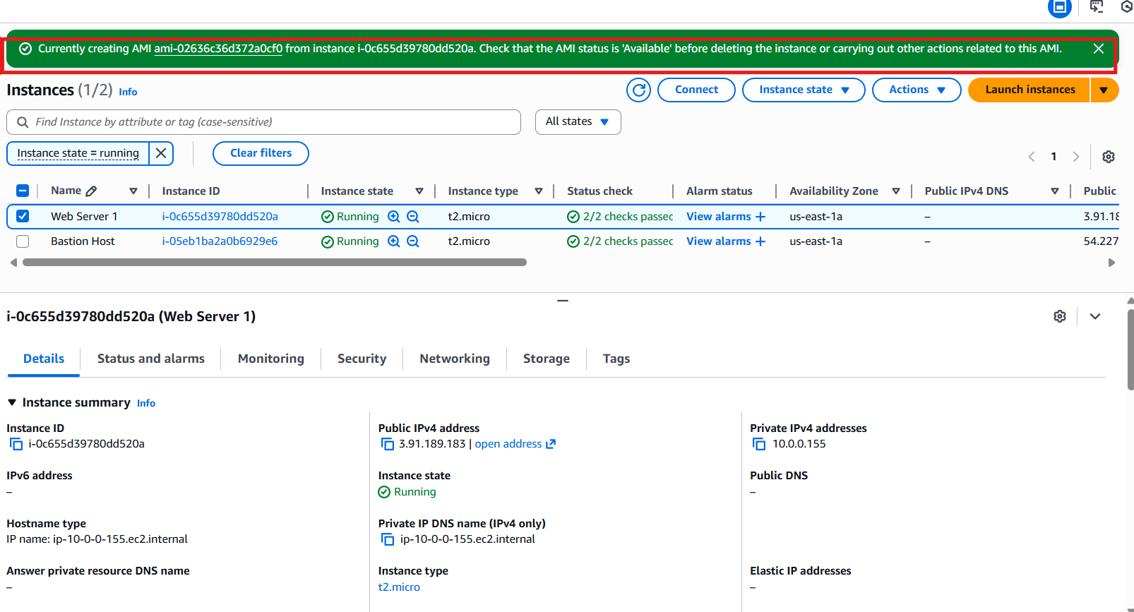 EC2 → Instances → seleccionar Web Server.