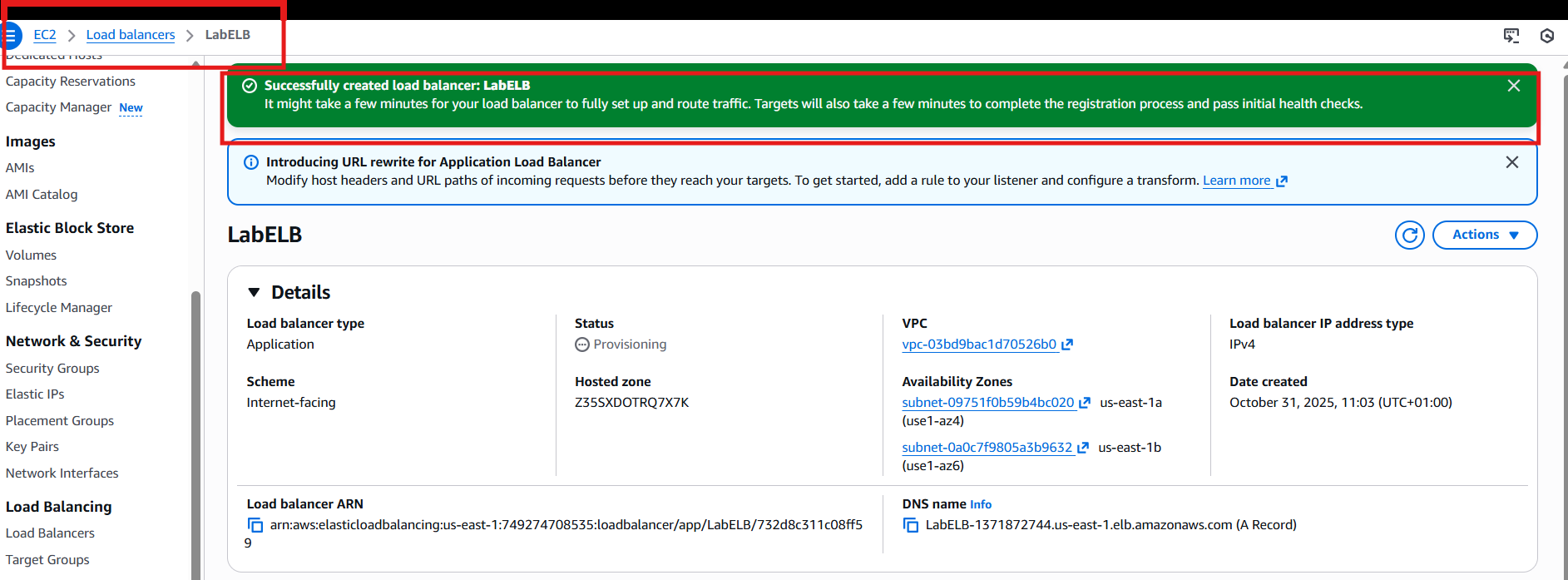 El Application Load Balancer LabELB con: