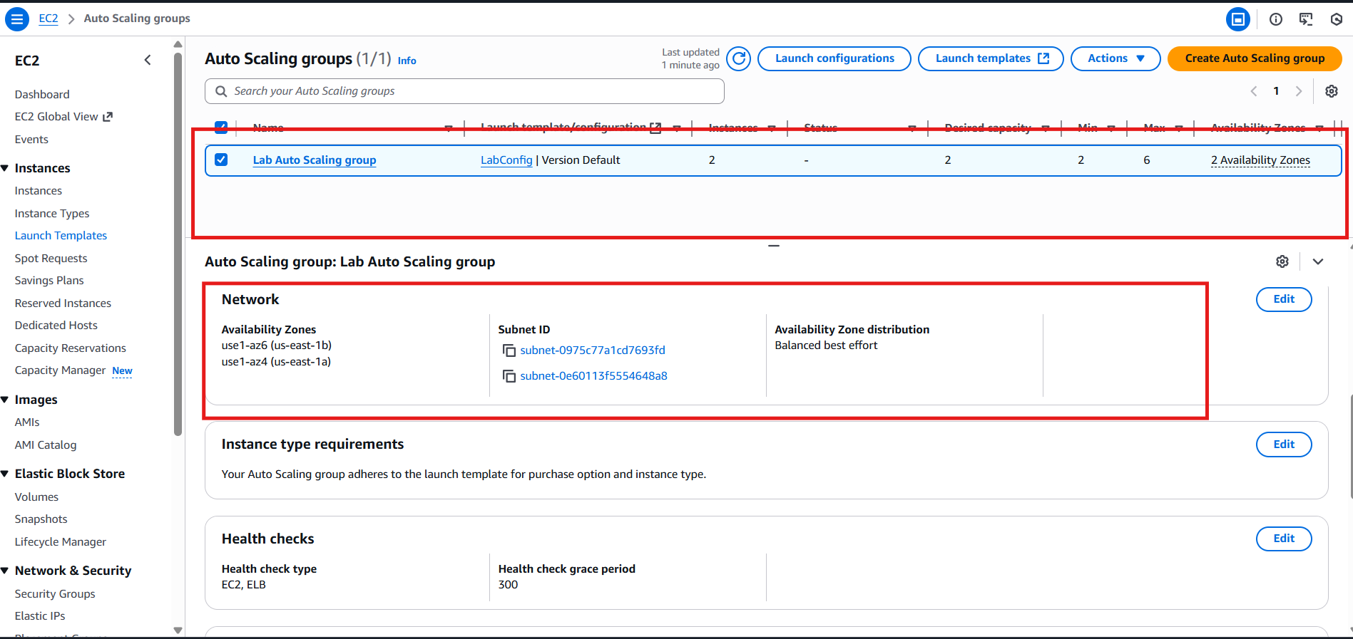 Auto Scaling Group (Lab Auto Scaling group) con: