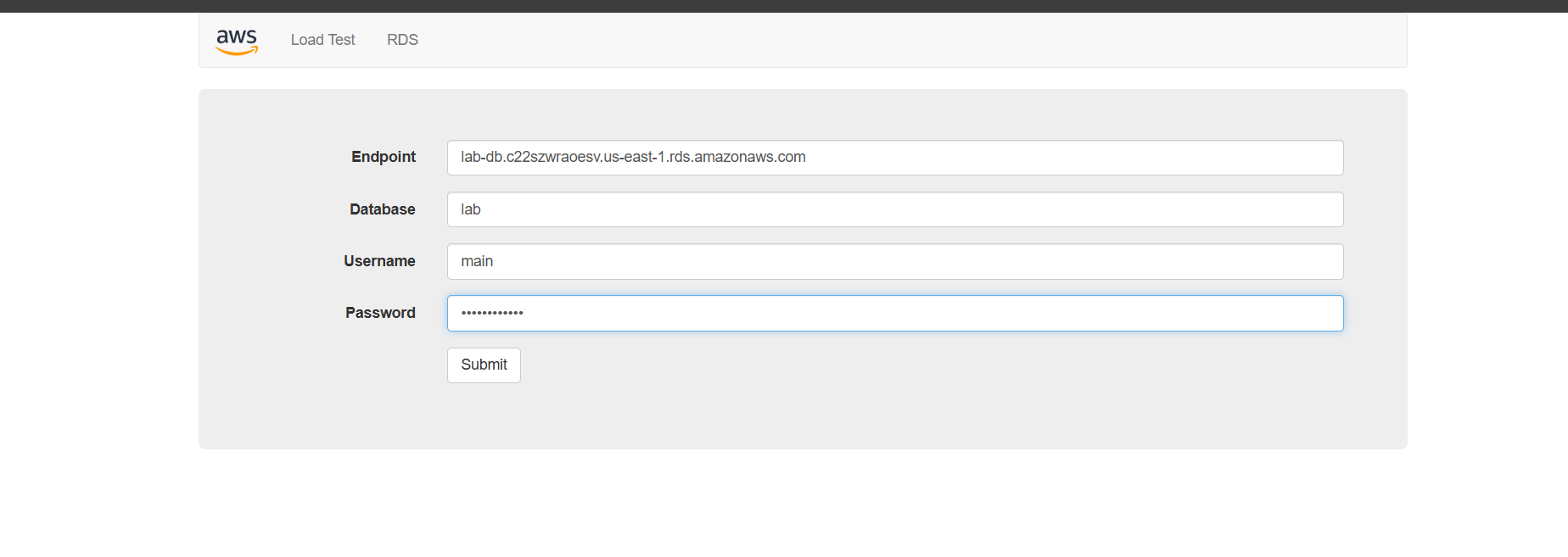 RDS —> Databases —> lab-db; copiar Endpoint