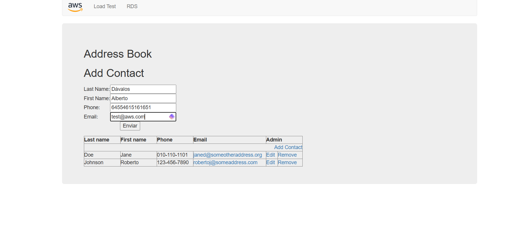 En la app, pestaña RDS → rellenar campos → Submit.