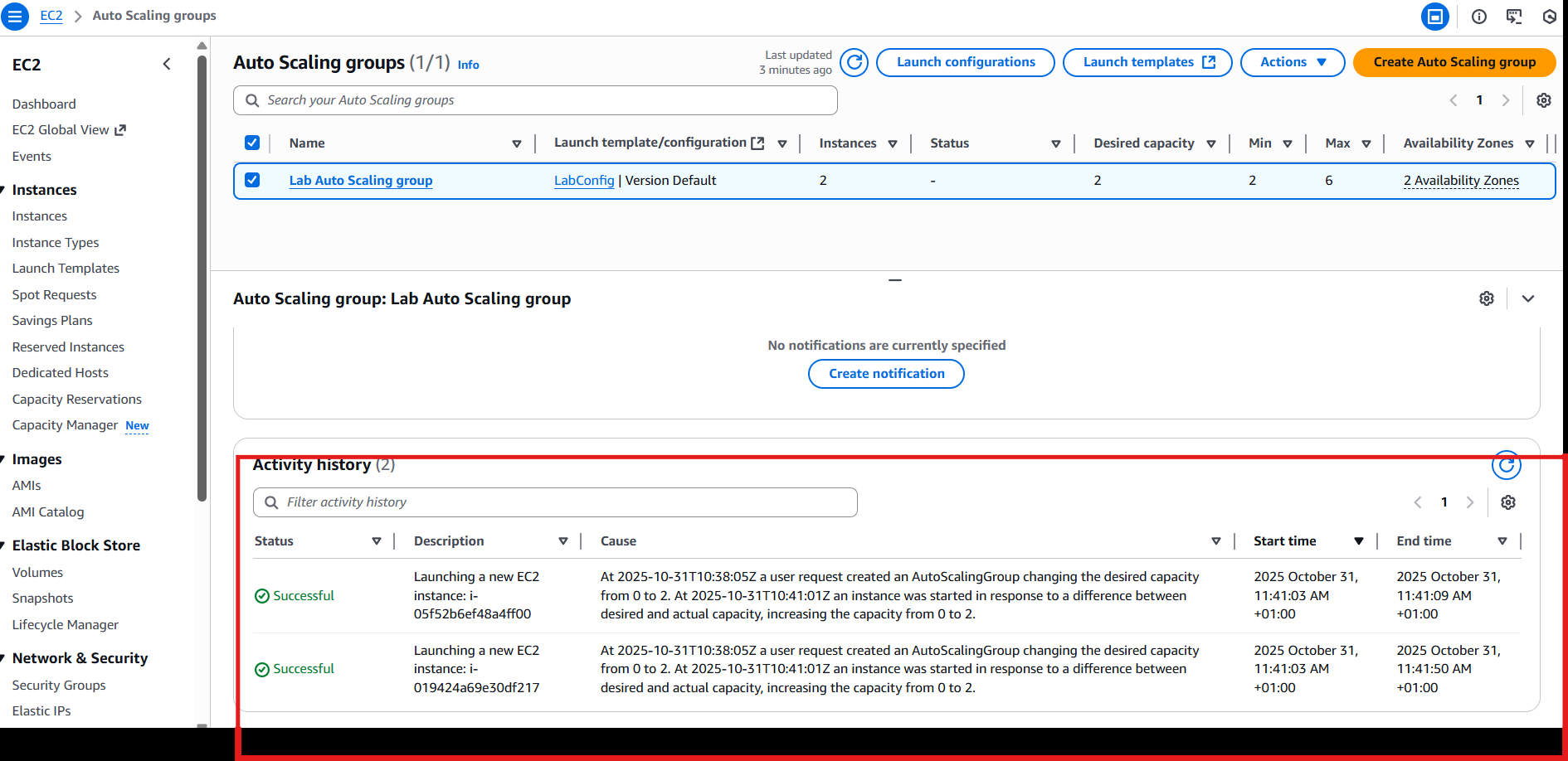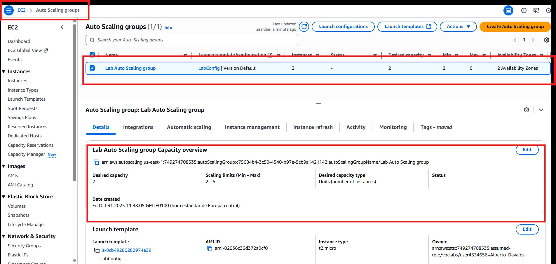 Auto Scaling Group (Lab Auto Scaling group) con: