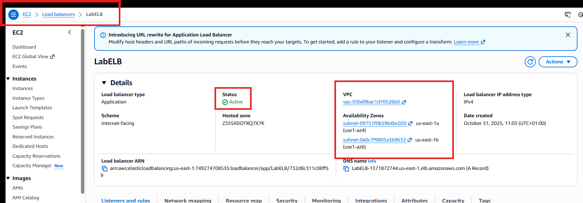 El Application Load Balancer LabELB con: