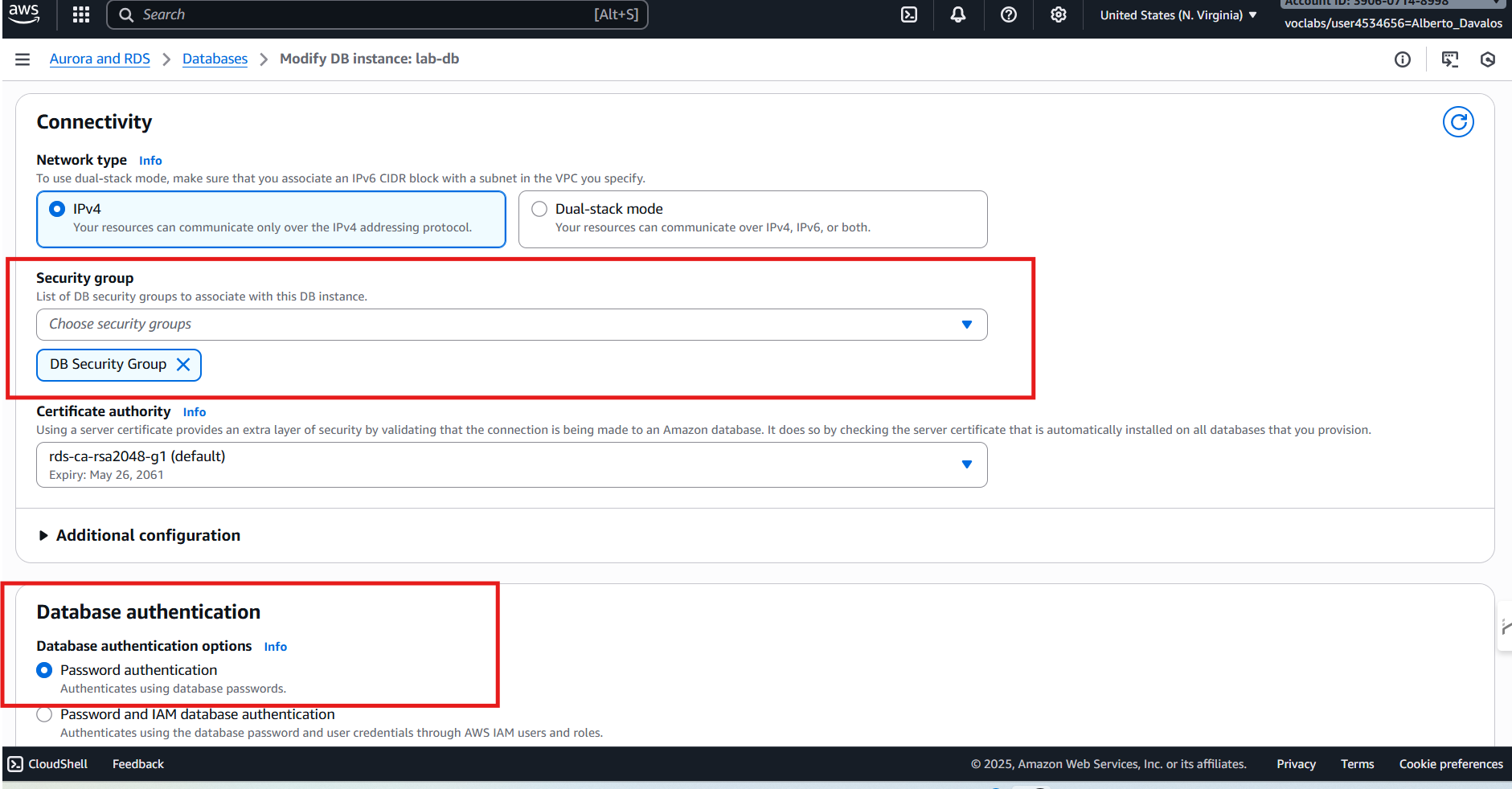 RDS —> Subnet groups —> Create DB Subnet Group y añadir subredes de Lab VPC.