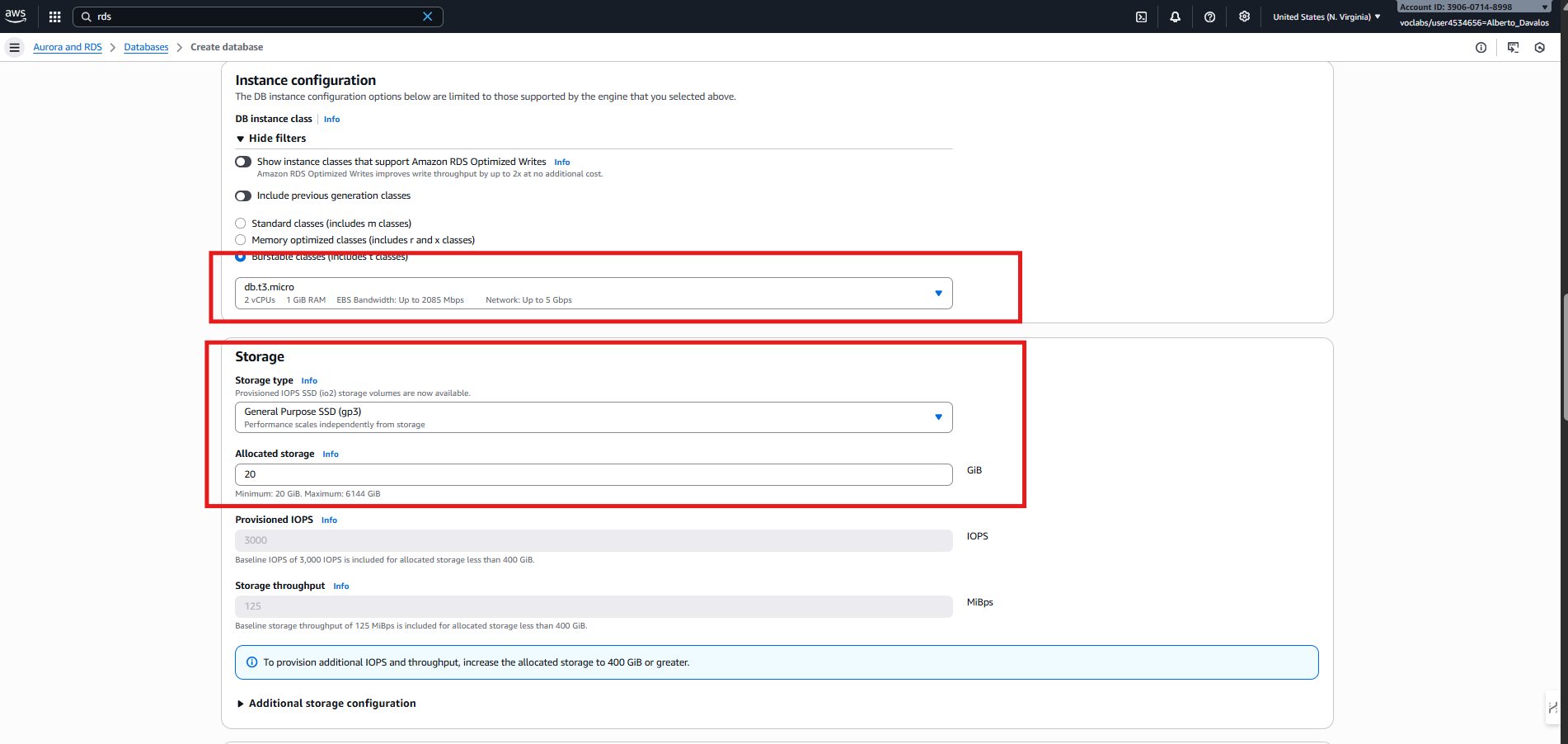 RDS —> Databases —> Create database con los parámetros anteriores.